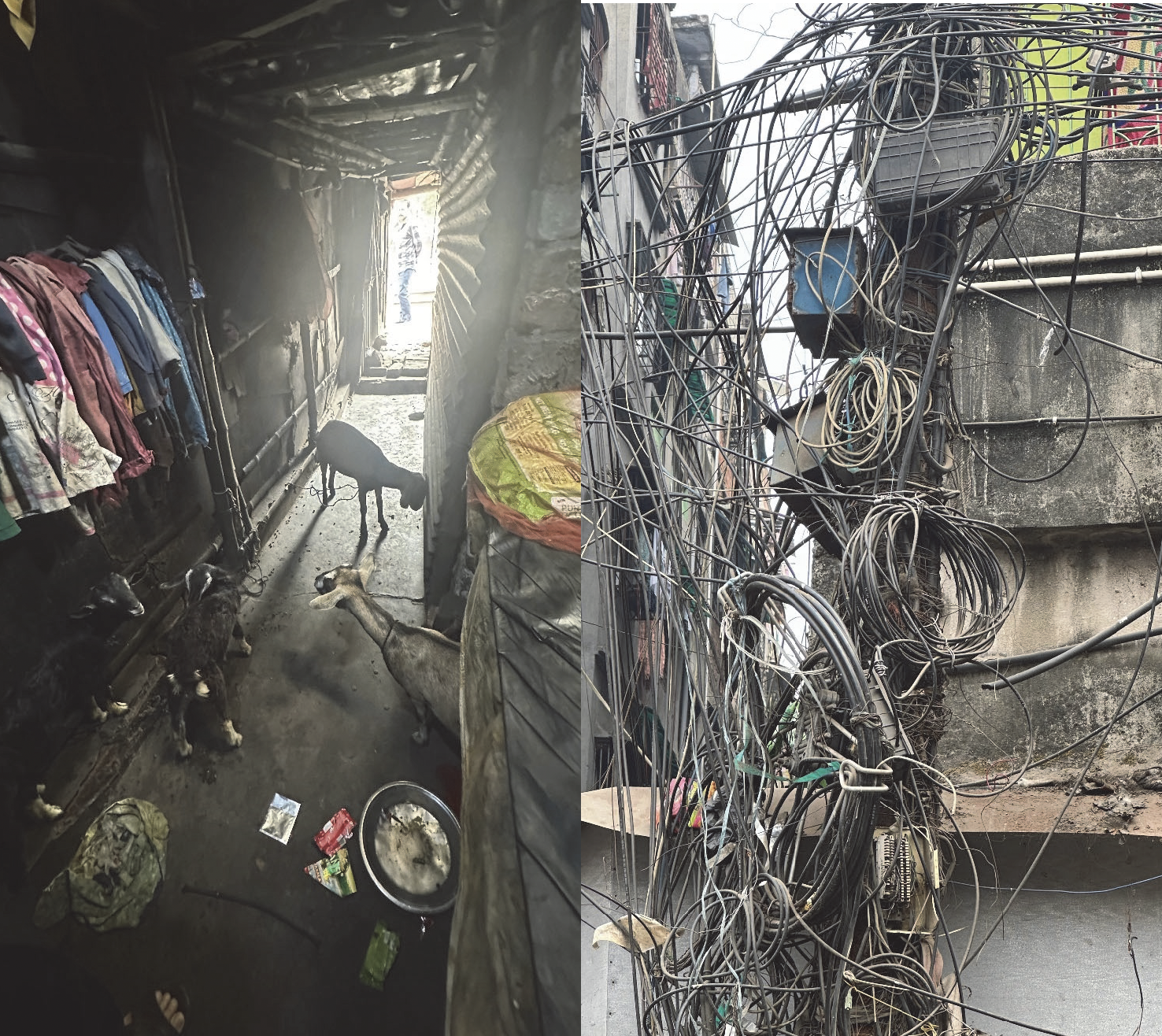 Die Unterkünfte der Armen sind sehr primitiv. Sie leben vielfach mit Ziegen unter einem Dach. Die Stromversorgung im Slum ist sehr schwierig.